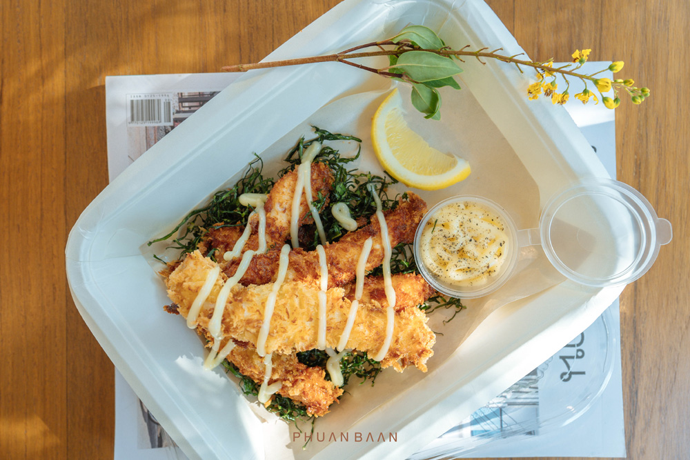 - ไก่ทอดยอดหญ้า : เป็นไก่กรอบที่ชุบด้วยเกล็ดขนมปังและราดด้วยซอสมะนาวที่มีรสชาติอมเปรี้ยวเพื่อตัดความเลี่ยนได้เป็นอย่างดี