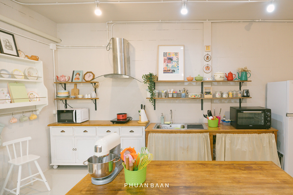 ห้องครัวสำหรับคลาสเรียนทำอาหารของเด็ก ห้องกว้างขาว สะอาด น่าเรียนมากแต่ติดตรงที่อายุไม่เอื้ออำนวยแล้วซิ