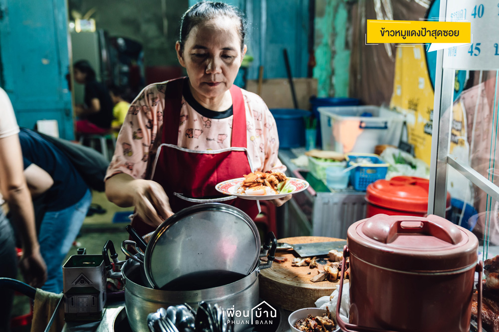 หมูกรอบชิ้นใหญ่ กัดทีดังกรุ๊บกรอบไปหมด ส่วนน้ำหมูแดงที่เอาไว้ราด ก็หวานกำลังดี